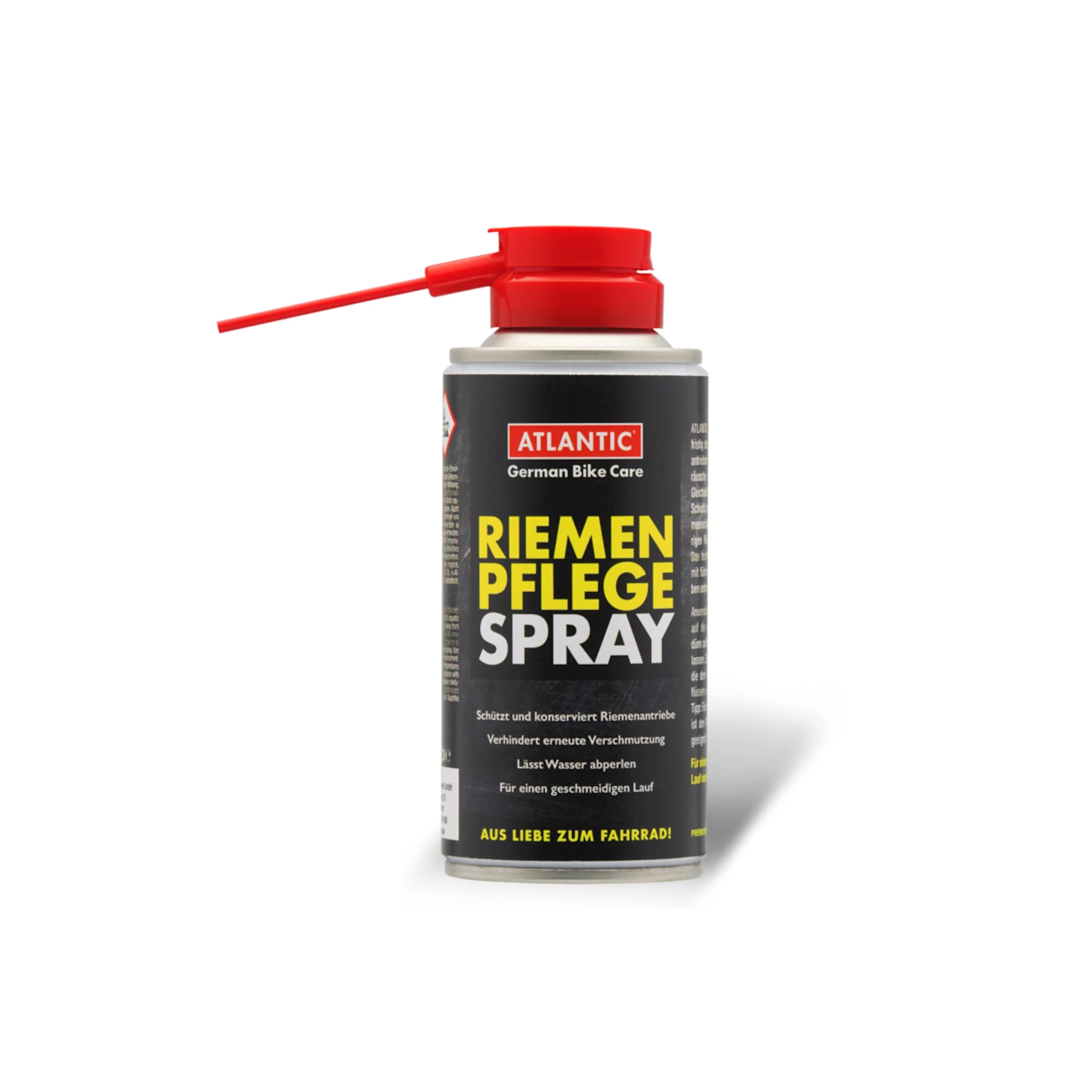 Outre les nombreux avantages de la transmission par courroie pour vélos, il ne faut pas négliger les soins réguliers. Le spray d’entretien pour courroie ATLANTIC® conserve le roulage fluide des entraînements par courroie et réduit au minimum les bruits dus aux frottements. En même temps, le spray d’entretien pour courroies dentées forme une couche protectrice où l’eau coule dessus et ce sans laisser de résidus huileux et graisseux. La poussière et la saleté n’adhèrent plus aussi facilement et la courroie d’entraînement est protégée contre toute nouvelle salissure. Le produit de soin pour courroies ATLANTIC® a été développé en collaboration avec les principaux fabricants de transmissions par courroie et peut donc être recommandé pour toutes les transmissions par courroie, comme le Gartes Carbon Drive ou le système CBD Continental.