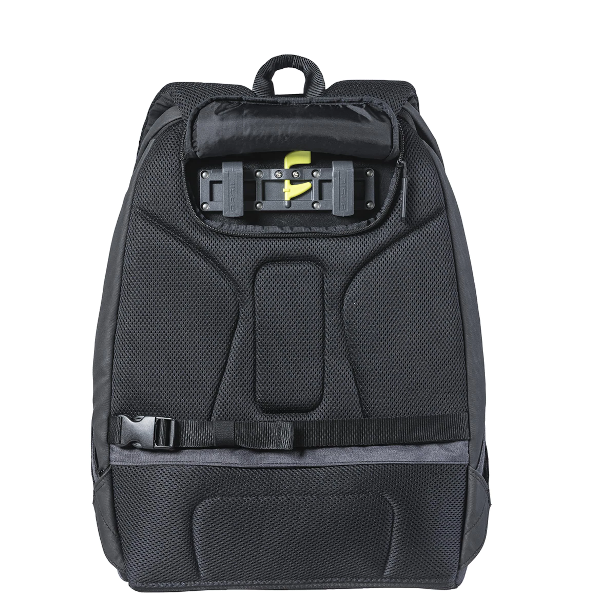 Le B-SAFE BACKPACK NORDLICHT de BASIL est deux en un: au choix un sac à dos ou une sacoche de porte-bagages à installer avec son système HOOK ON. Point fort: la technologie « Nordlicht », une lumière DEL intégrée à l’avant qui accroît votre visibilité dans la circulation routière. L’intérieur réparti astucieusement et les compartiments séparés entre autres pour un ordinateur portable jusqu’en 15,6’’ satisfait les demandes des cyclistes qui font la navette!