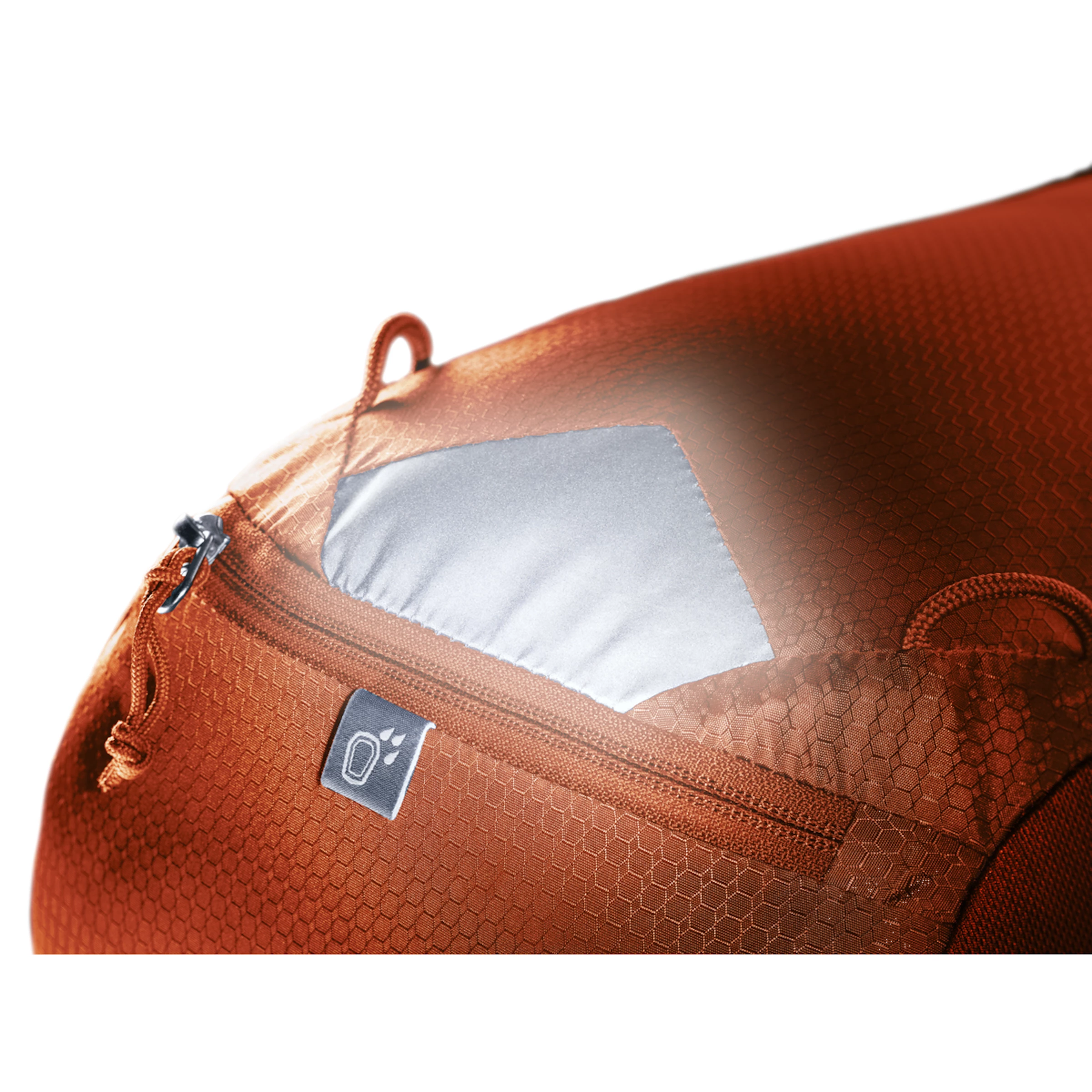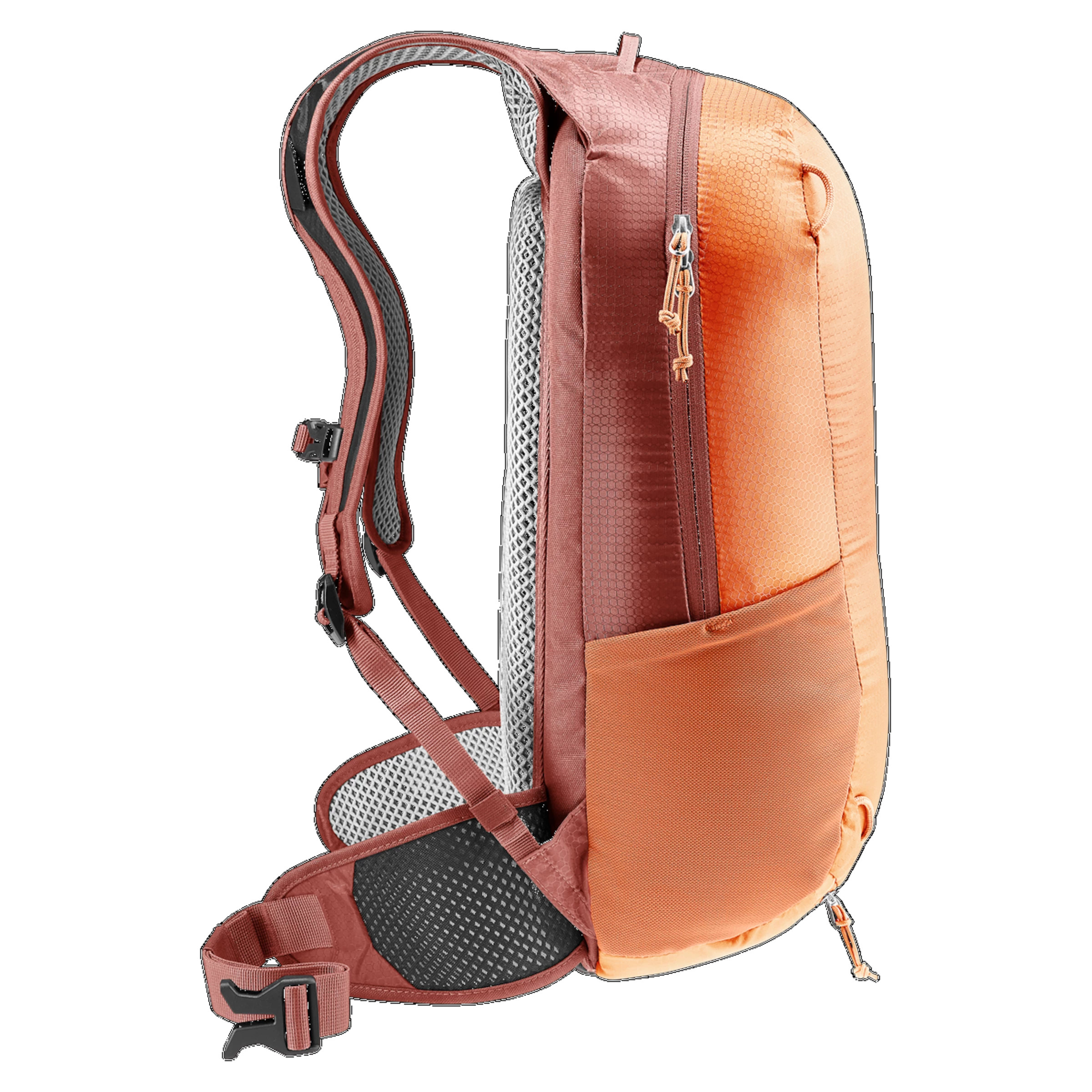 Les stabilisateurs ergonomiques aux hanches et les bretelles d’épaule sont ajustés pour qu’il ne bouge pas sur les sentiers exigeants. Le mesh léger et aéré des bretelles ainsi que le système AIRSTRIPES éprouvé de deuter mènent à une aération idéale sur les sentiers engagés. La taille moyenne de ce modèle de la série RACE est de 16 litres et alors optimale pour les randonnées d’une journée où on emmène quelques bagages.