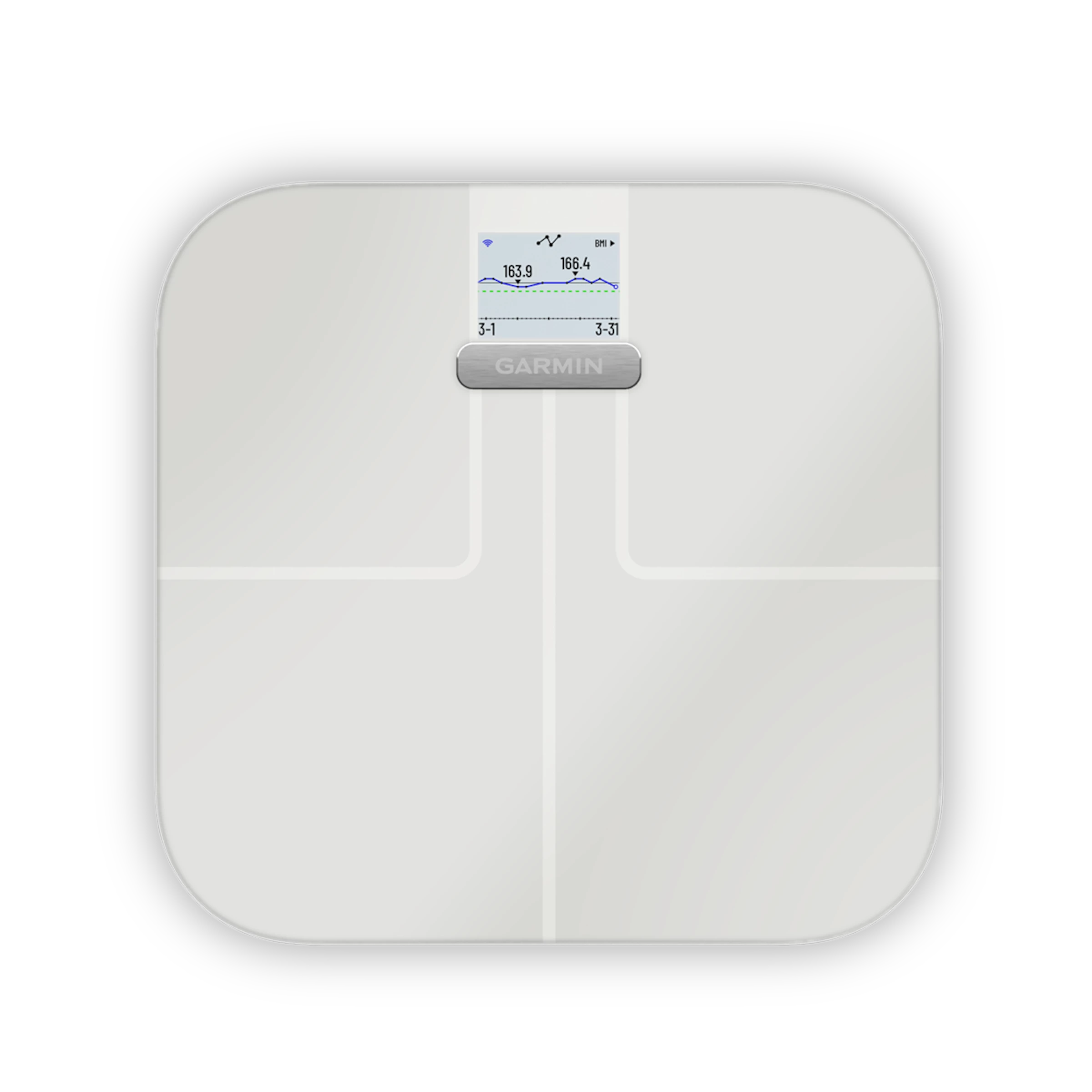 AFFICHAGE ADAPTABLE: Choisissez sur GARMIN Connect™ des statistiques que vous voulez voir quand vous montez sur la balance.