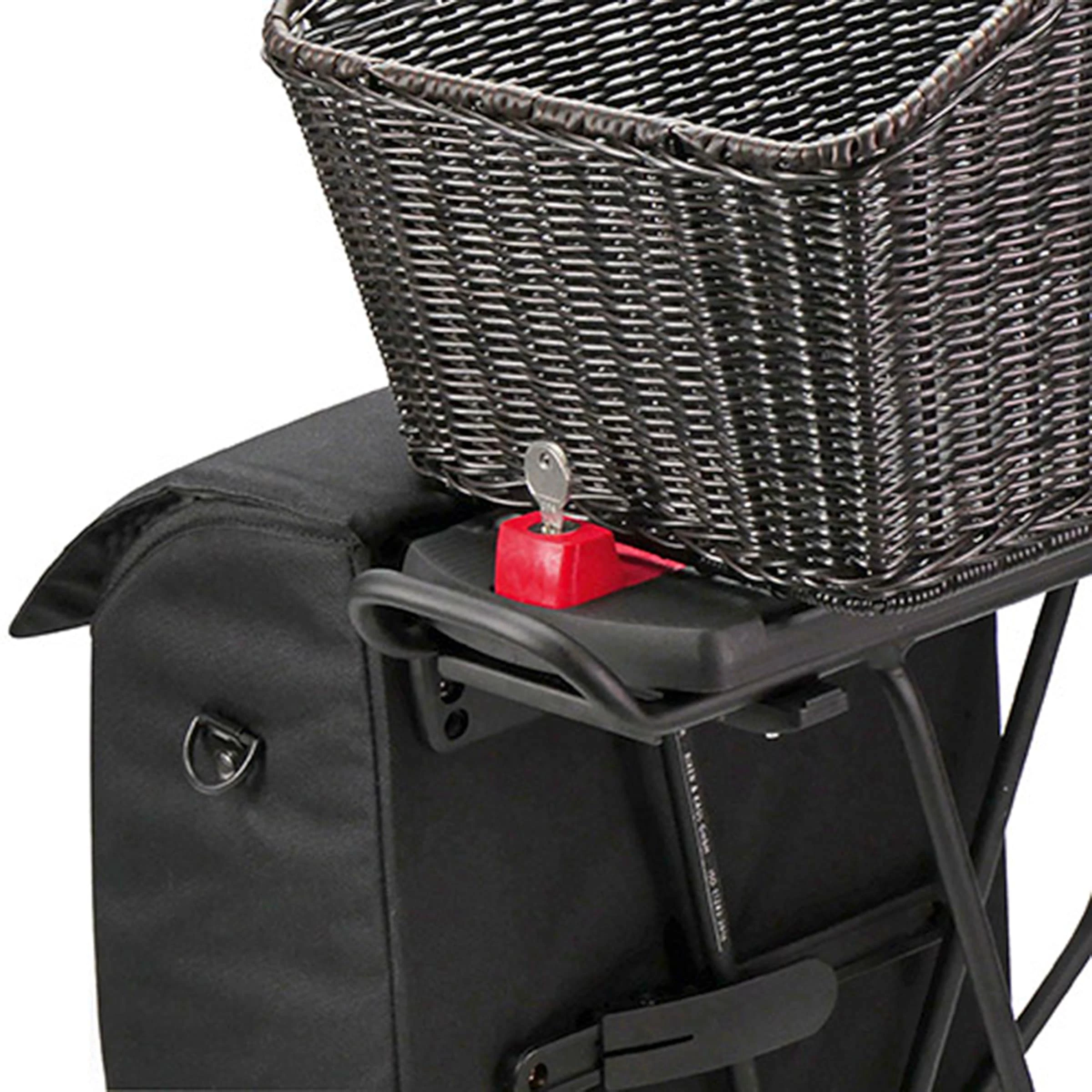 Pour qui veut faire des combos, le système GTA KLICKfix est la solution parfaite car elle permet aux cyclistes d’utiliser et de verrouiller des sacoches de porte-bagages avec des paniers, sacoches supérieures ou boîtes. La grande plaque fait office d’une surface de chargement plane. En enclenche au milieu des paniers, boîtes ou top cases dotés d’un raccord GTA. Les sacoches dotées de crochets GTA sont accrochées aux fentes latérales. Tous les éléments sont verrouillés centralement. La plaque adaptatrice GTA est vissée avec deux ponts stables au porte-bagages (jusqu’à 14,5 cm de largeur maximum).