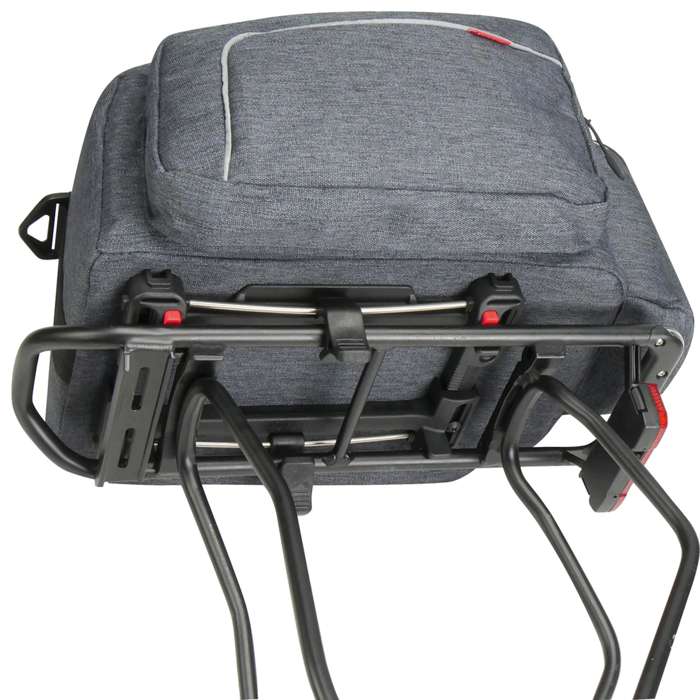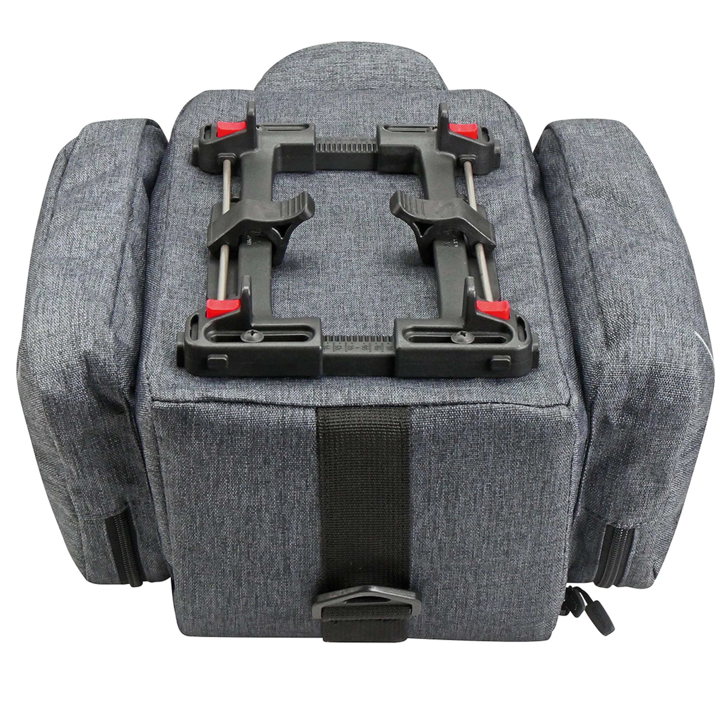 La fixation rapide est encore plus flexible, plus légère et plus compacte que le précédent modèle. Les deux clips peuvent désormais être déplacés en continu sur des axes afin de les placer parfaitement entre les rails. Ainsi, le modèle mis à jour s’adapte à un plus grand nombre de porte-bagages. Il faut juste régler une fois la largeur sur celle du porte-bagages, mettre la sacoche/le panier en place, rabattre le clip, et c’est parti! On peut installer une protection antivol plus tard.