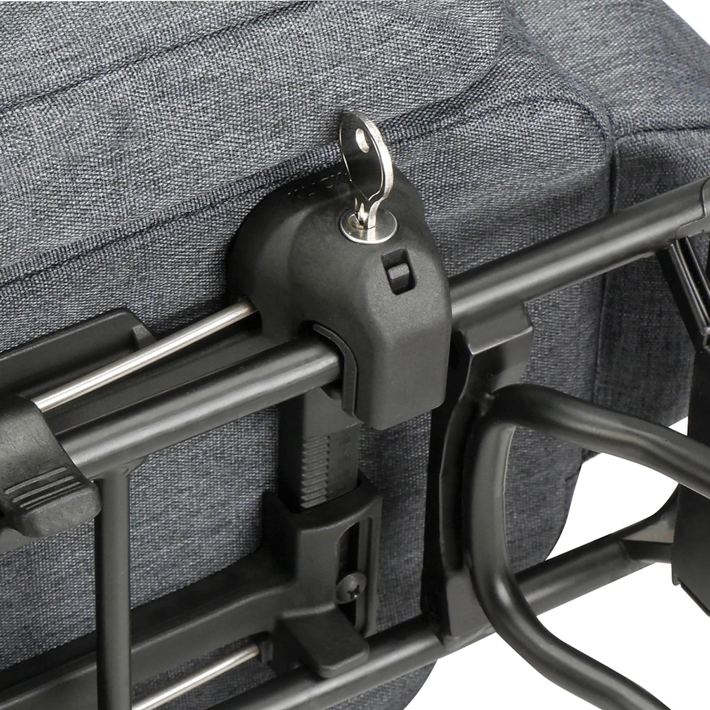 Pour sécuriser la fixation rapide UniKlip 2 de manière flexible sur votre porte-bagages, vous mettez tout simplement l’antivol enfichable KLICKfix sur l’adaptateur. L’antivol à rajouter entoure le rail du porte-bagages et empêche ainsi tout retrait non autorisé. Il faut juste clipser le sac/panier sur le porte-bagages, mettre le cadenas et verrouiller. Et voilà, c’est sécurisé!