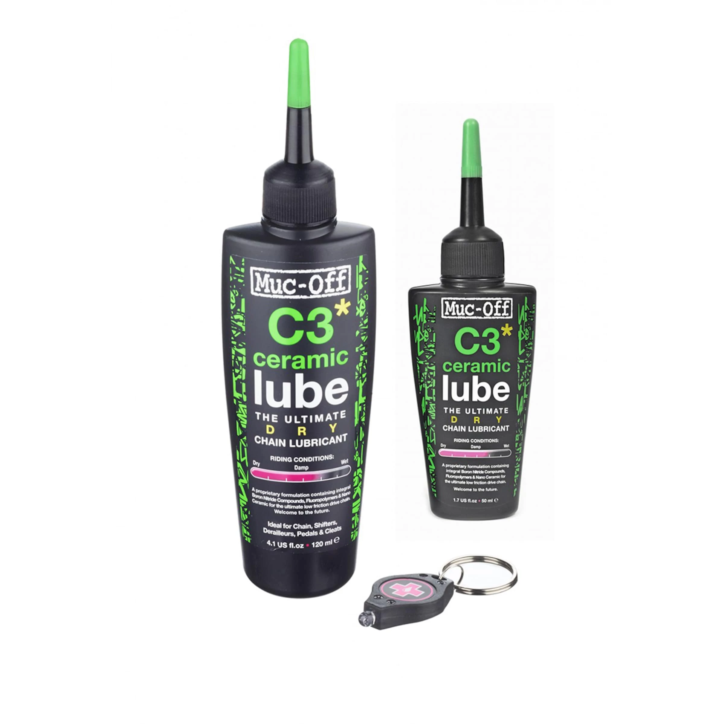 L’ajout de céramique quant au Dry Lube atteint une meilleure épaisseur et performance; les frictions sont réduites et la transmission s’use bien plus tard. Le point fort: grâce au pigment UV intégré et la lampe UV fournie avec, on peut vérifier avec exactitude si la chaîne a été traitée suffisamment.