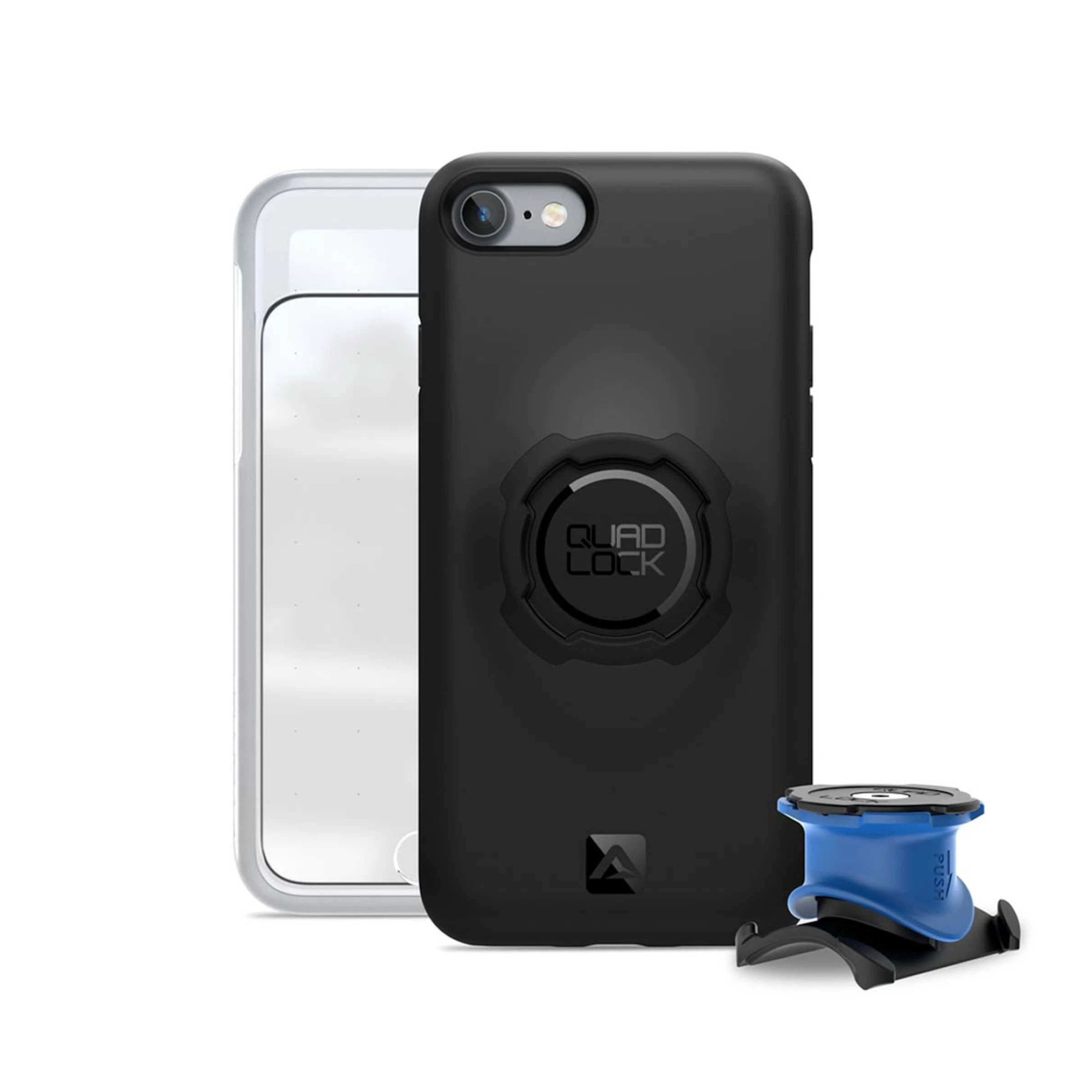 Le kit vélo Quad Lock pour iPhone 7 et iPhone 8 tient votre smartphone au cintre. C’est une solution assez sobre et pratique car le Quad Lock fonctionne en trois instants: le smartphone est glissé dans la housse Quad Lock, la fixation est montée au cintre ou à la potence et le smartphone y est mis en un tournemain jusqu’à ce qu’un clic soit audible.