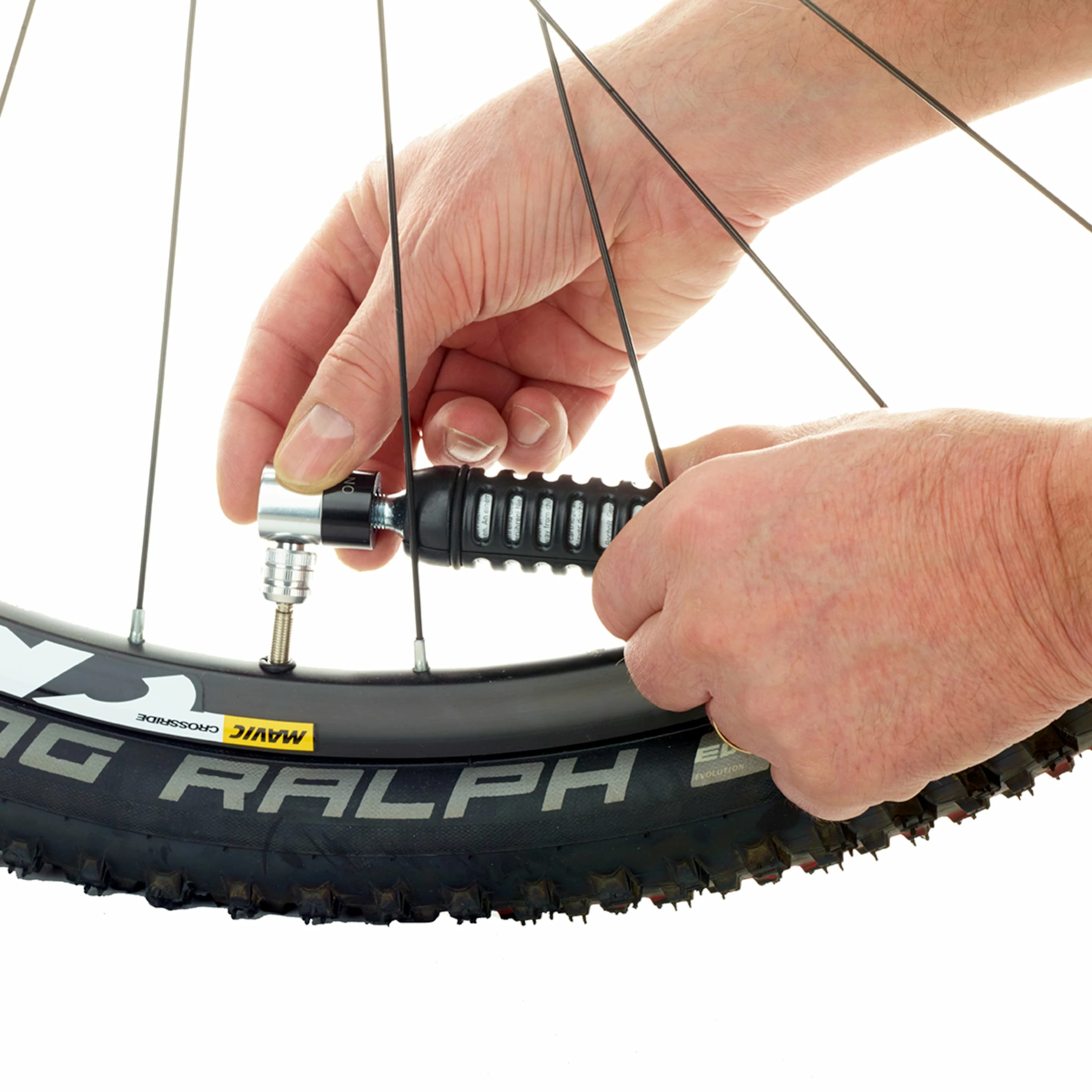 Et qui a besoin de plus de pression en moins de temps, dévisse simplement la tête de pompe et l’utilise comme gonfleur sur une cartouche CO2 filetée.