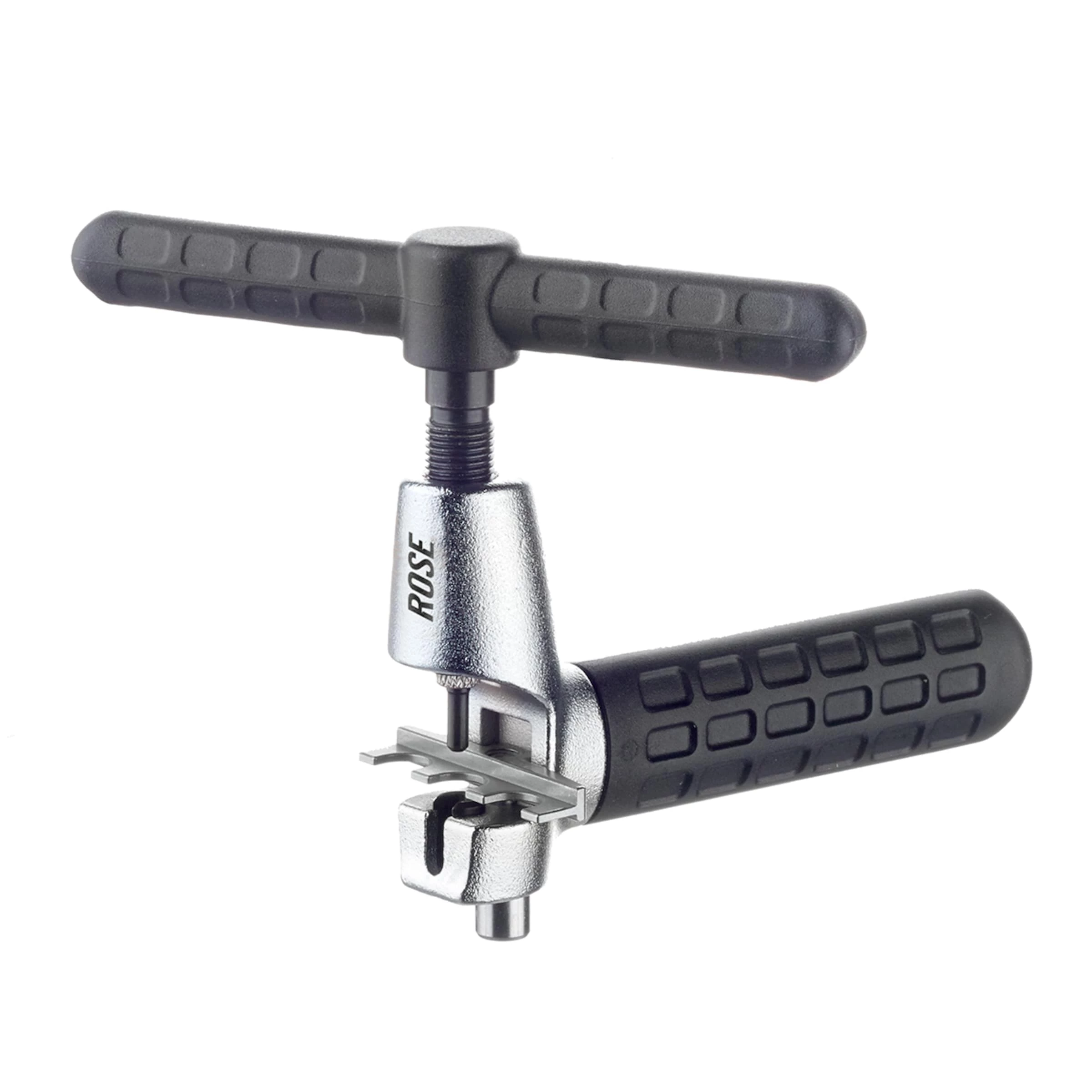 Le dérive-chaîne ROSE Pinpusher Pro est si solide que l’on peut utiliser souvent dans l’atelier amateur. Le matériau composite avec des renfoncements tient bien en main, les grandes ailettes au fuseau facilitant considérablement la mise et le retrait des boulons. En appuyant sur un bouton, on peut même adapter individuellement les glissières aux chaînes en les différentes largeurs.