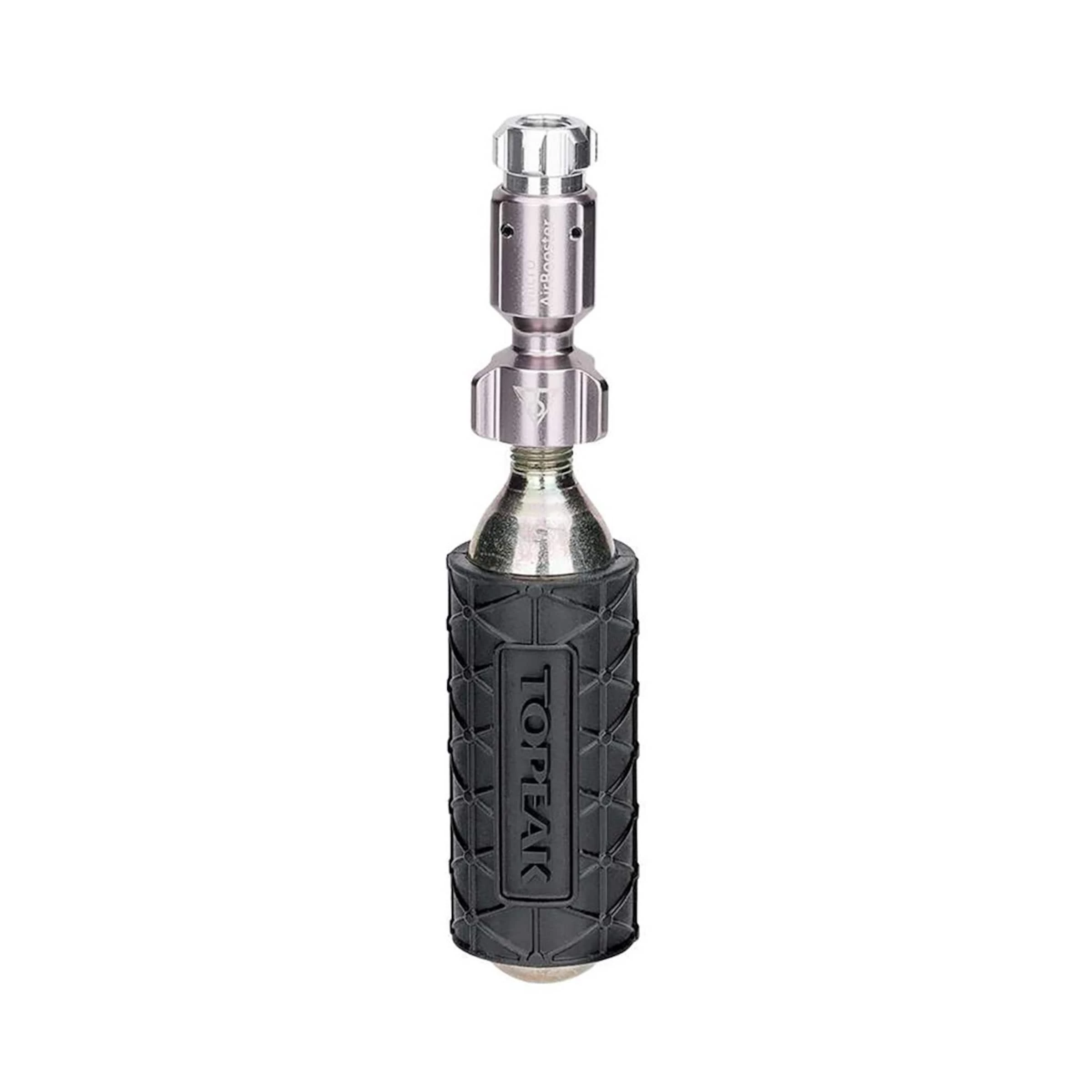 La pompe CO2 Topeak Micro est super légère car elle est fraisée CNC d’un seul tenant d’aluminium. Étant facile d’utilisation, il suffit de visser l’embout Micro AirBooster sur la cartouche et la pompe est prête à l’utilisation. La housse de protection CO2 en silicone contenue préserve vos mains de refroidir lors du gonflage car la cartouche devient très froide.