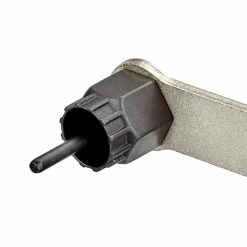 Le dérive chaîne Topeak Universal Chain Tool, fait de deux composantes solides avec une poignée creusée, possède un compartiment pour les pointes et, étant peu encombrant, se range facilement dans toute sacoche de selle. Si on y intègre une clé à six pans, on peut rallonger le manche.